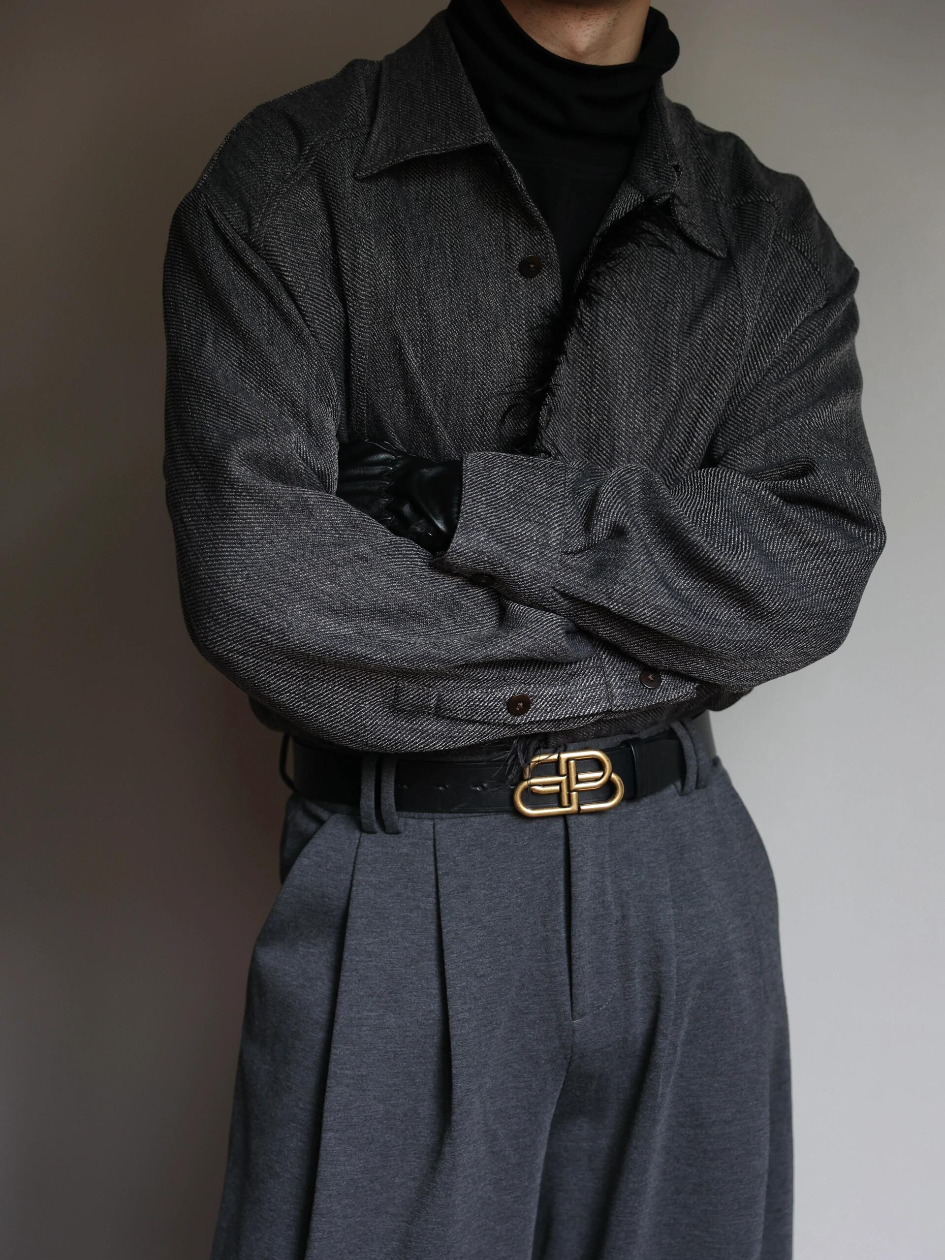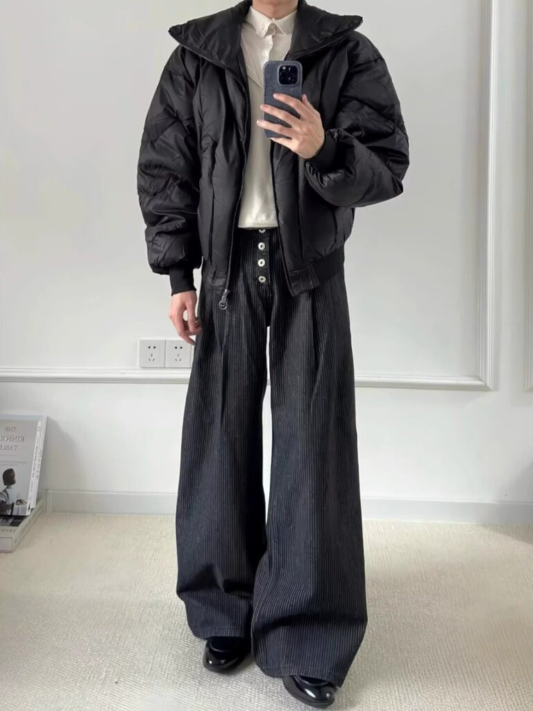 Men's High-Waist Pleated Denim Wide-Leg Trousers