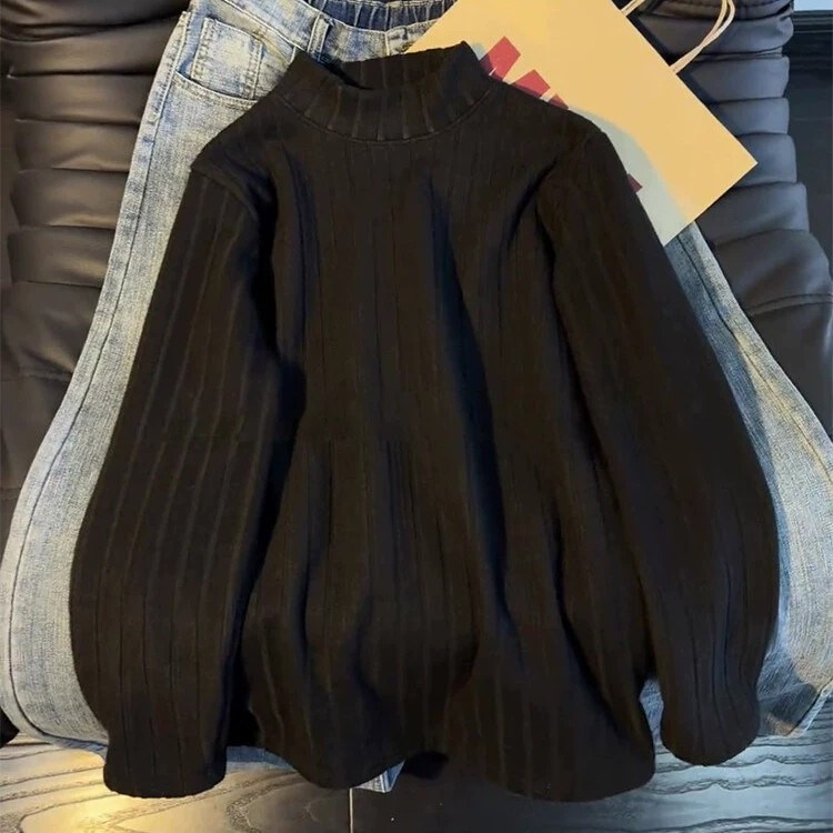Men’s Black American Style Half-Turtleneck Fleece Lined Tee