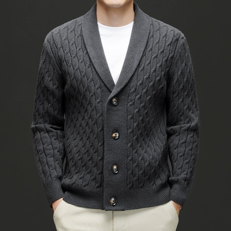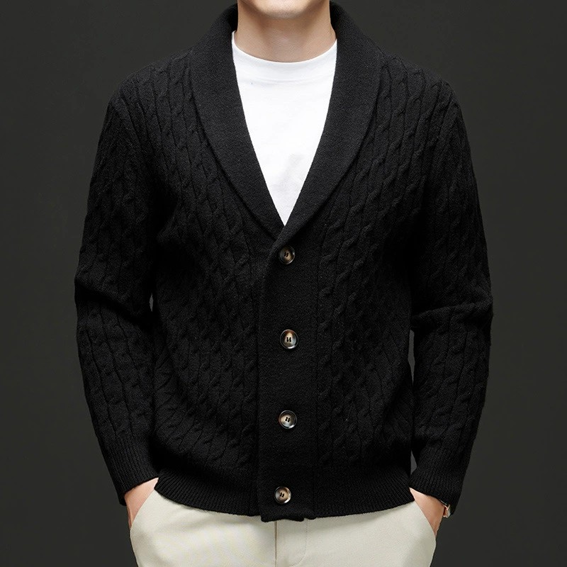 Crafted from 36%-40% premium wool, this 2024 autumn/winter cardigan offers both warmth and breathability. The fine yarn and thick knit provide a cozy feel, while the embroidered detailing adds a sophisticated touch. Designed with a tailored fit and a classic turn-down collar, it suits middle-aged men seeking stylish comfort. Available in black, gray, off-white, and deep brown, this casual yet fashionable cardigan is easy to care for with machine washable fabric and moisture-wicking properties, ideal for the spring and autumn seasons.