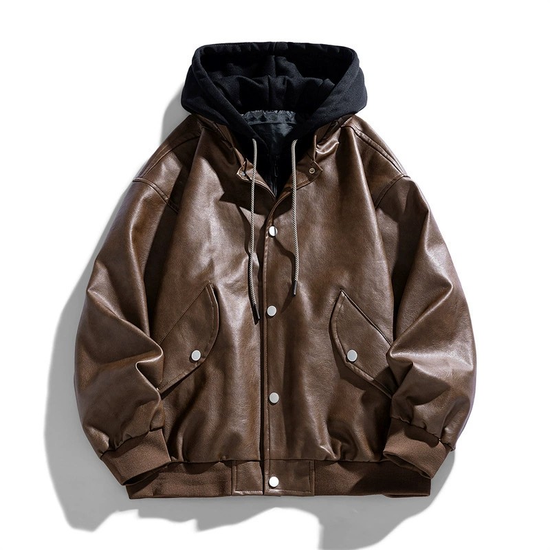 Step out in style with this 2025 men’s retro-inspired faux leather jacket. Designed with a functional hood, zip front, and side seam pockets, this loose-fit jacket blends high street fashion with American vintage aesthetics. Available in black, coffee, and khaki, it’s ideal for casual spring and autumn wear. The jacket’s color block details add a bold, trendy touch, while the straight hemline and collarless design keep the look clean and contemporary. Crafted from durable synthetic leather, this versatile jacket offers both comfort and edge for the fashion-conscious urban man.