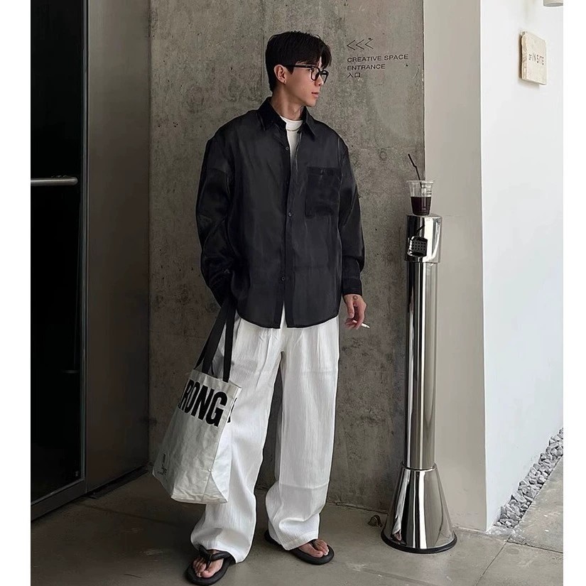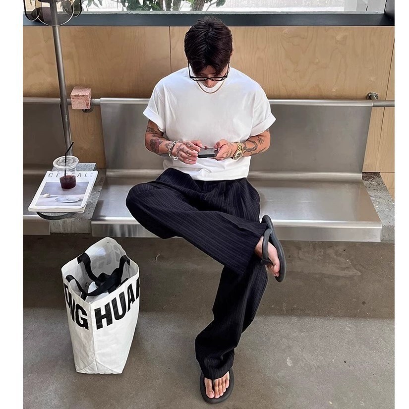 Be the first to review “2025 Summer American Vintage Textured Soft Single-Pleat Straight Casual Pants for Men, Loose Wide-Leg Long Trousers in White”