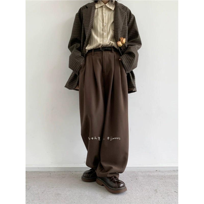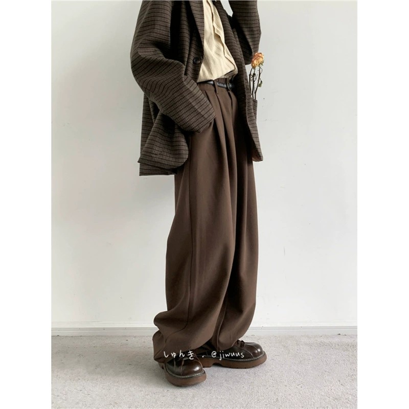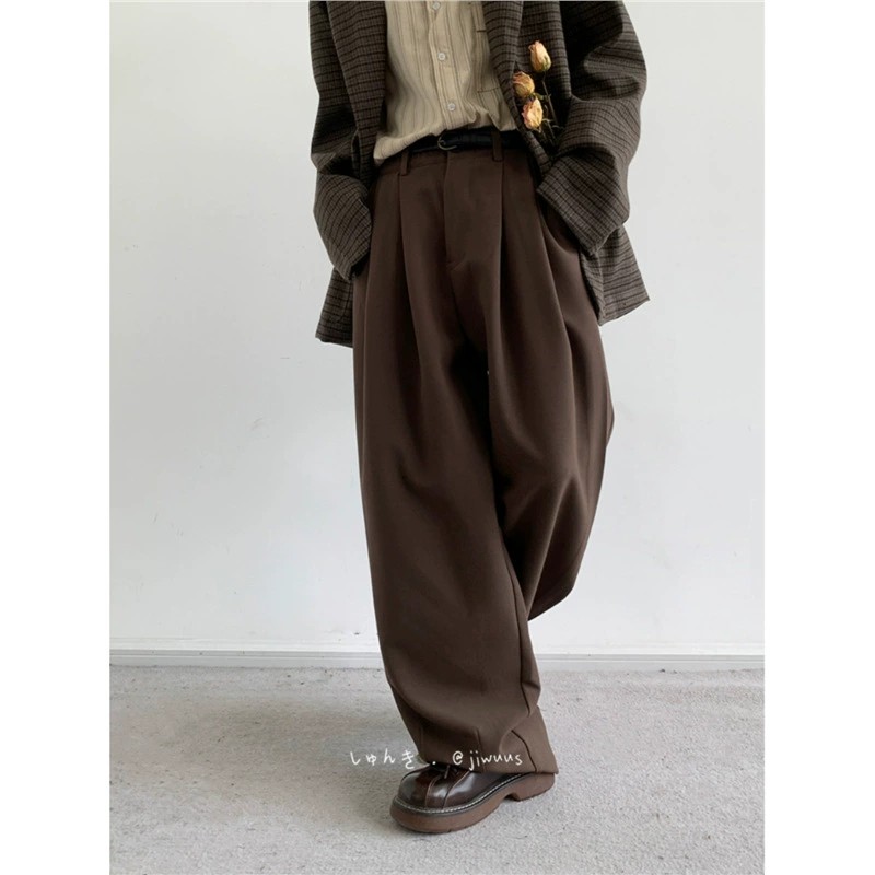 Embrace classic Japanese vintage aesthetics with the Cityboy straight-leg pants. Crafted from high-quality polyester, these mid-waist pants feature a refined coffee brown tone with subtle stretch for everyday comfort. Designed for a relaxed yet tailored fit, they drape naturally for effortless style. Suitable for all seasons and ideal for youthful fashion enthusiasts, these pants pair seamlessly with various tops. Available in multiple sizes and colors, including upgraded black and soft apricot, each pair represents original design and superior quality.