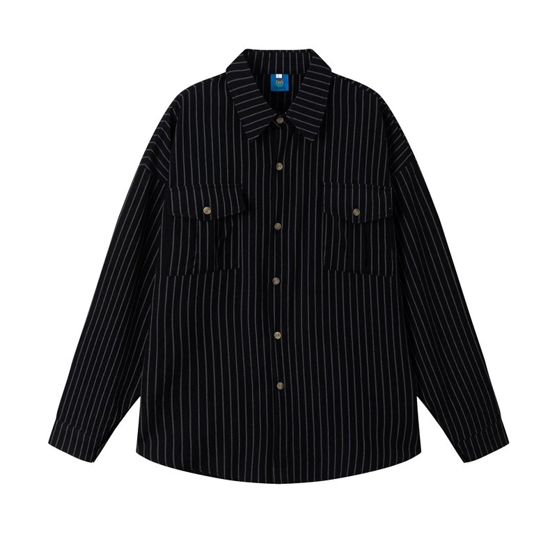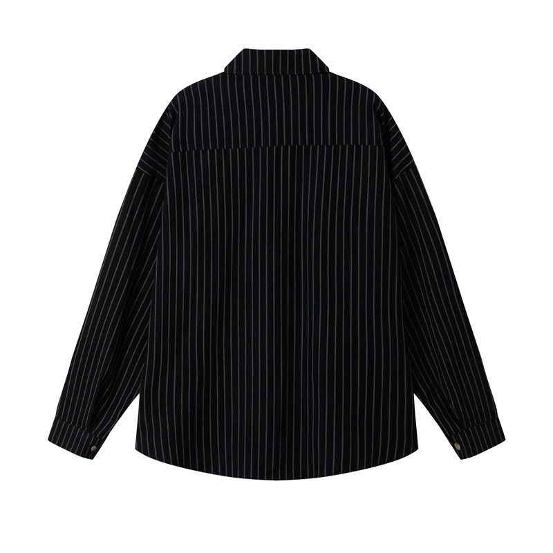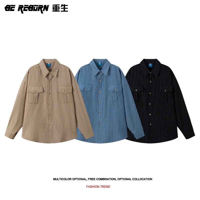 This Japanese-inspired vintage striped overshirt offers a unique blend of style and comfort. Crafted from thick, breathable polyester with wrinkle-free treatment, it ensures easy care and durability. The relaxed, loose fit and classic turn-down collar suit both men and women, making it a versatile wardrobe staple. Detailed with practical pockets, this overshirt is perfect for casual outings in autumn. Available in black, khaki, and patterned colors, it pairs flawlessly with any laid-back look while reflecting contemporary Harajuku fashion trends.