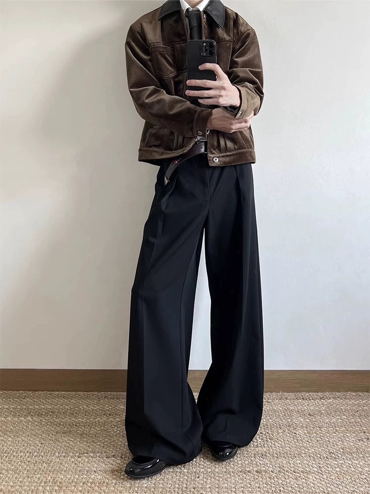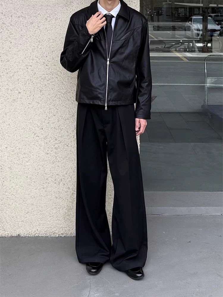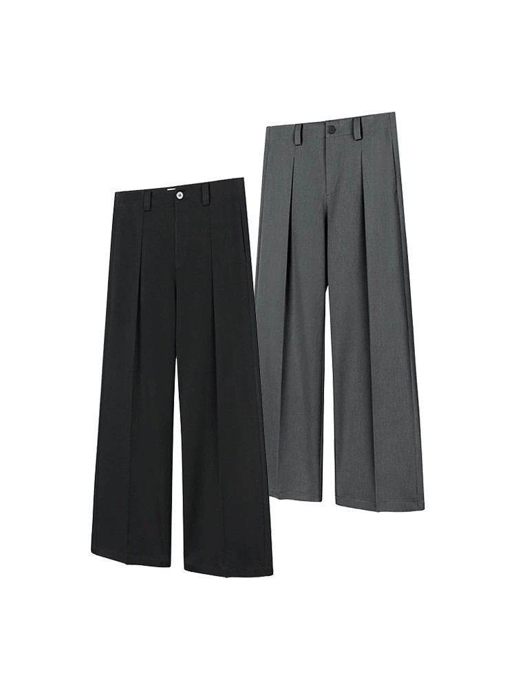 These JTFS Relaxed Pleated Wide-Leg Casual Trousers combine comfort with contemporary style. Crafted from a blend of polyester, viscose, and a touch of spandex, they offer a soft drape and slight stretch for ease of movement. Featuring a modern pleated A-line design and wrinkle-resistant fabric, these trousers are ideal for light business or casual settings. Available in black and dark grey, and sizes S to XL, they suit young professionals seeking a trendy yet polished look. Perfect for spring and autumn seasons, these trousers balance functionality and style for everyday wear.