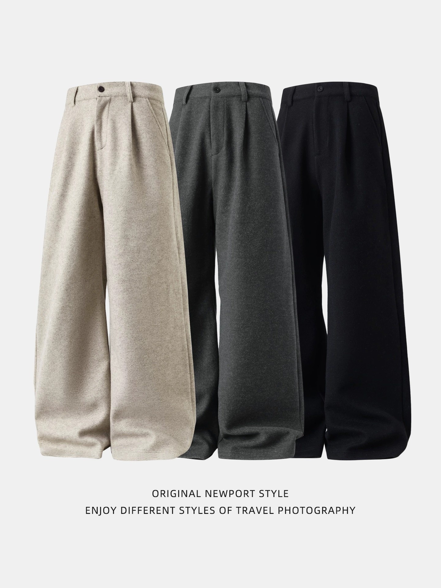 Crafted from a premium 92.8% polyester and 7.2% viscose blend, these 360g heavy wool blend pants provide exceptional texture and durability. Designed for a relaxed, straight-leg fit with subtle stretch, they offer all-day comfort and a modern silhouette. Featuring a mid-rise waist and classic button closure, these pants perfectly balance casual style with premium craftsmanship. Ideal for youthful, street-inspired looks in spring and autumn, they come in versatile shades like Meteorite Black, Morning Fog Gray, and Hazelnut Oat. Suitable for everyday wear across global markets, these pants combine style, comfort, and quality in one must-have piece.