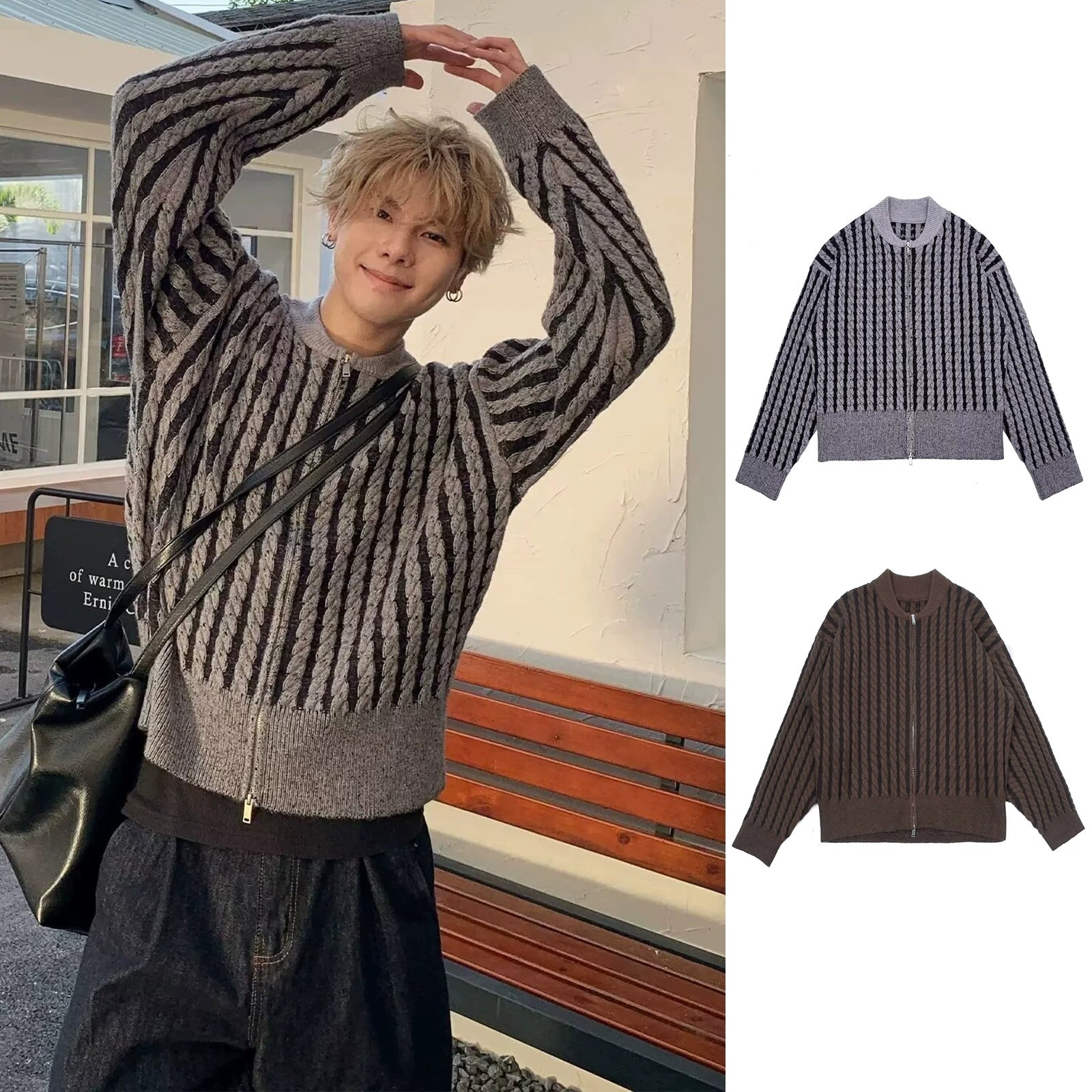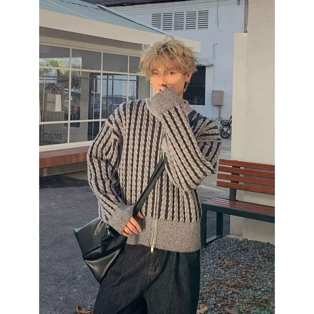 This men’s knitted cardigan jacket combines style and comfort with a breathable polyester blend fabric that’s easy to care for and machine washable. Designed with a loose fit and round neckline, it features a trendy twisted knit pattern that adds a youthful vibe. The garment undergoes a wrinkle-resistant finish, ensuring a neat look throughout the day. Available in versatile coffee and grey tones, this cardigan is perfect for casual winter occasions, offering both warmth and modern style for young men aged 18-24. Sizes range from M to XXXL, suitable for diverse body types and global fashion markets.