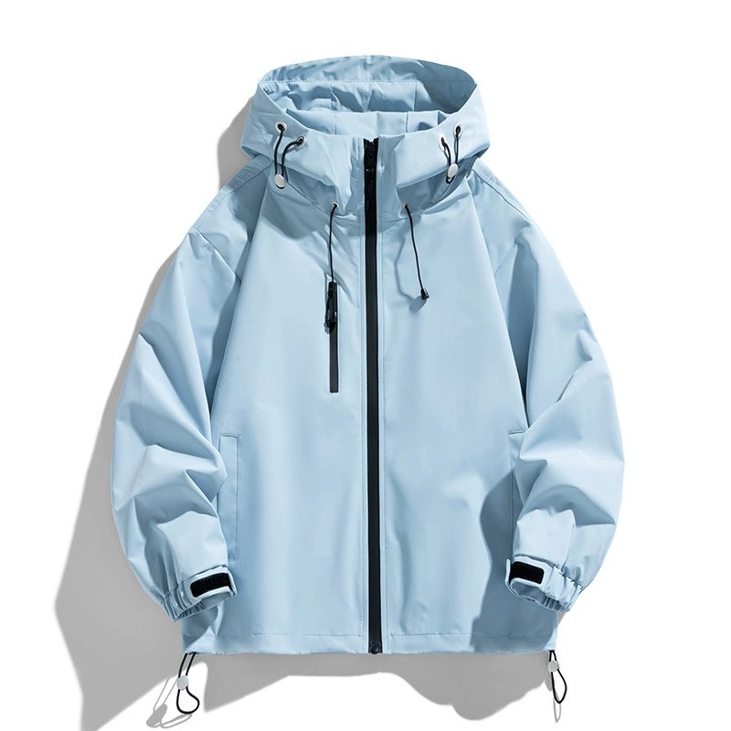 Stylish lightweight hooded jacket offering wind resistance and comfortable loose fit, perfect for spring and autumn outdoor activities and travel.