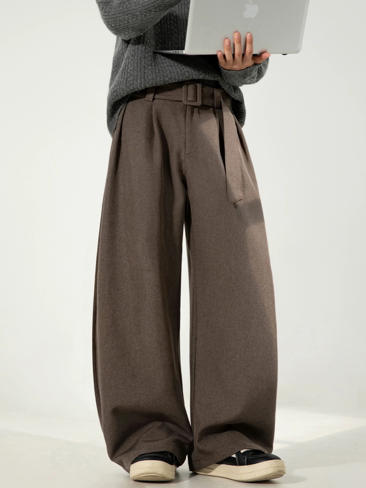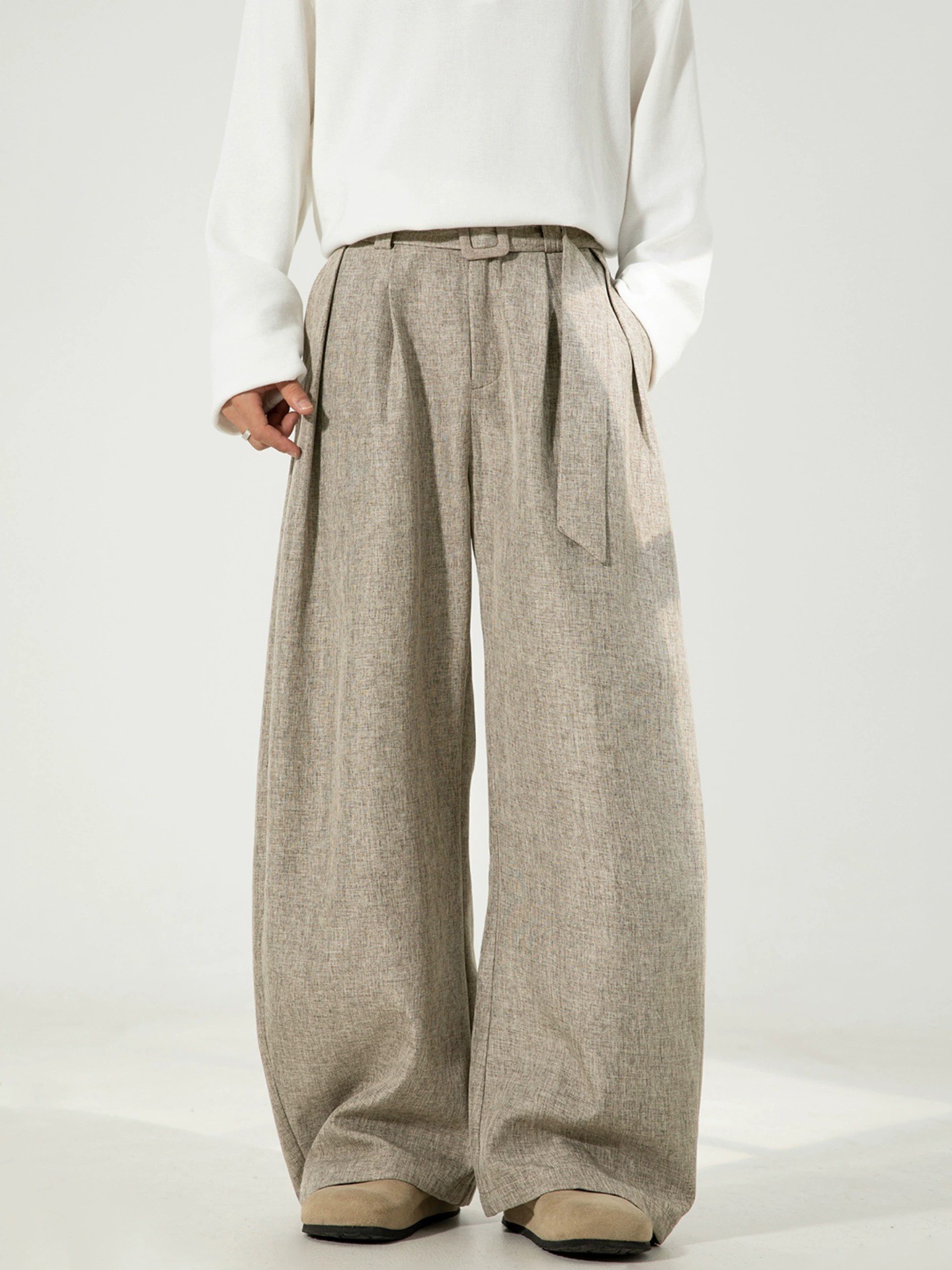 Experience premium comfort with these men’s loose-fit pleated trousers, crafted from 100% polyester with a slightly elastic fabric for ease of movement. Designed for the autumn season, these straight-leg pants offer a relaxed mid-rise fit, ideal for youthful street-style enthusiasts. Available in black, dark gray, oat, and cocoa brown, with both regular and fleece-lined options for extra warmth. Featuring a clean, minimalist look with zip fly closure, these pants are perfect for casual occasions while maintaining a trendy and effortless style.