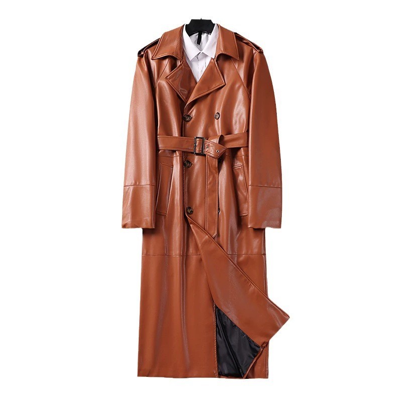 This Men’s Premium PU Leather Long Trench Coat combines elegance and functionality for the modern man. Designed with a tailored fit, double-breasted buttons, and polished edging, it offers a sophisticated look for urban professionals. Crafted from high-quality PU leather with a polyester lining, it provides extra warmth through thick, padded insulation—ideal for spring, autumn, and winter seasons. The coat features a classic lapel collar, straight hem, and convenient welt pockets. Available in black, camel, and blue-brown, and a wide range of sizes from M to 9XL, this trench coat is perfect for daily wear, business occasions, and fashion-conscious men aged 24-35.