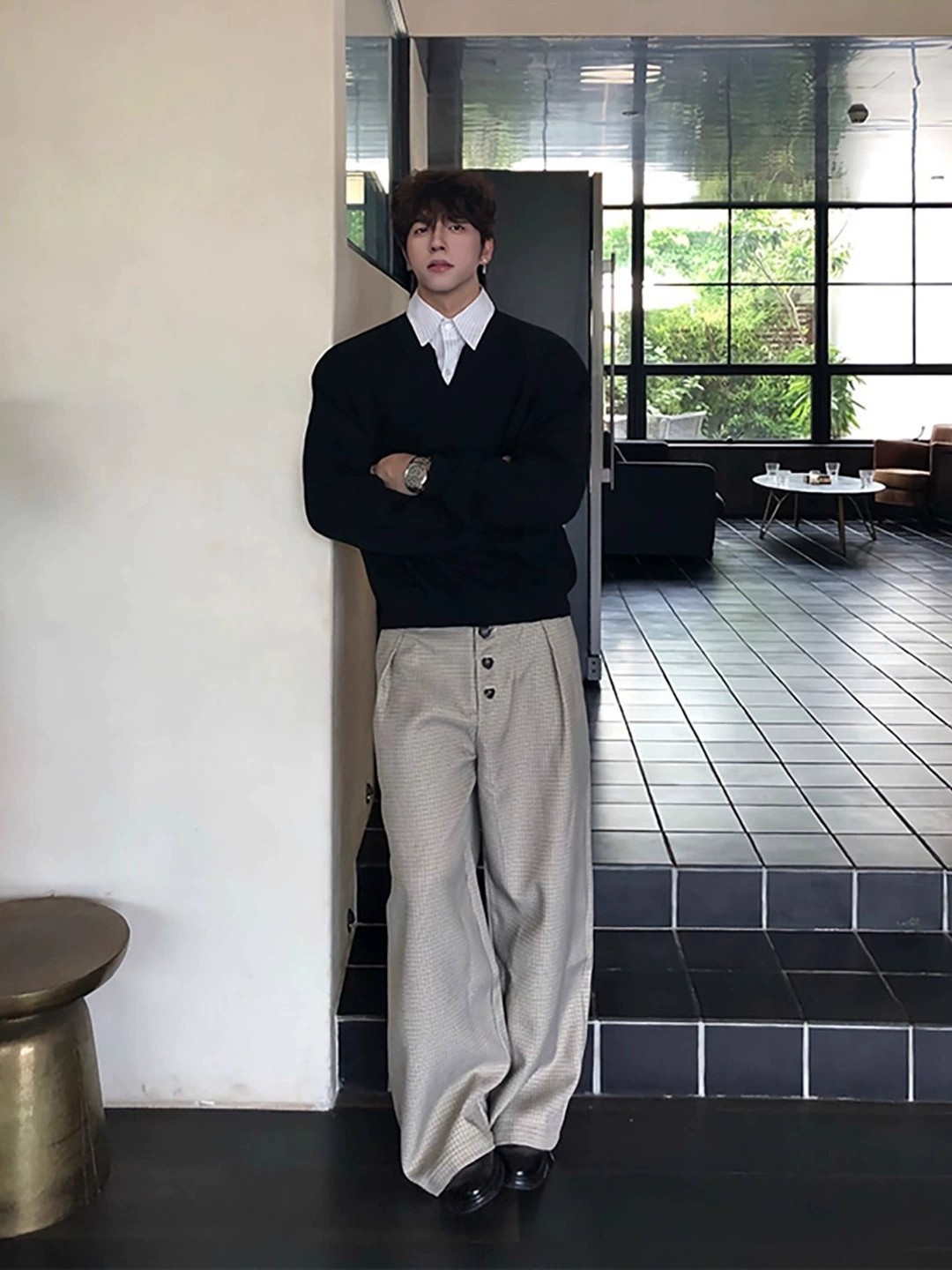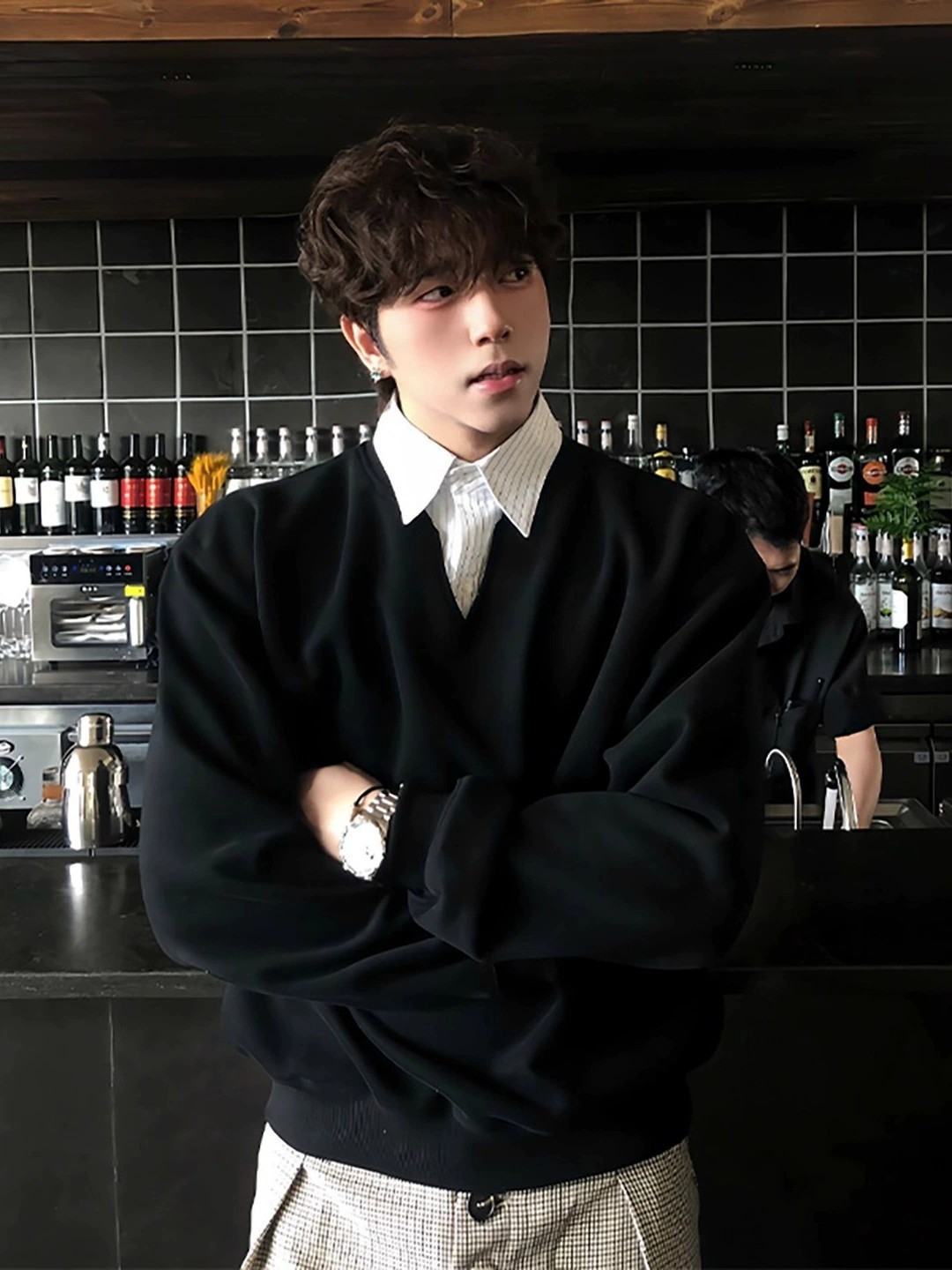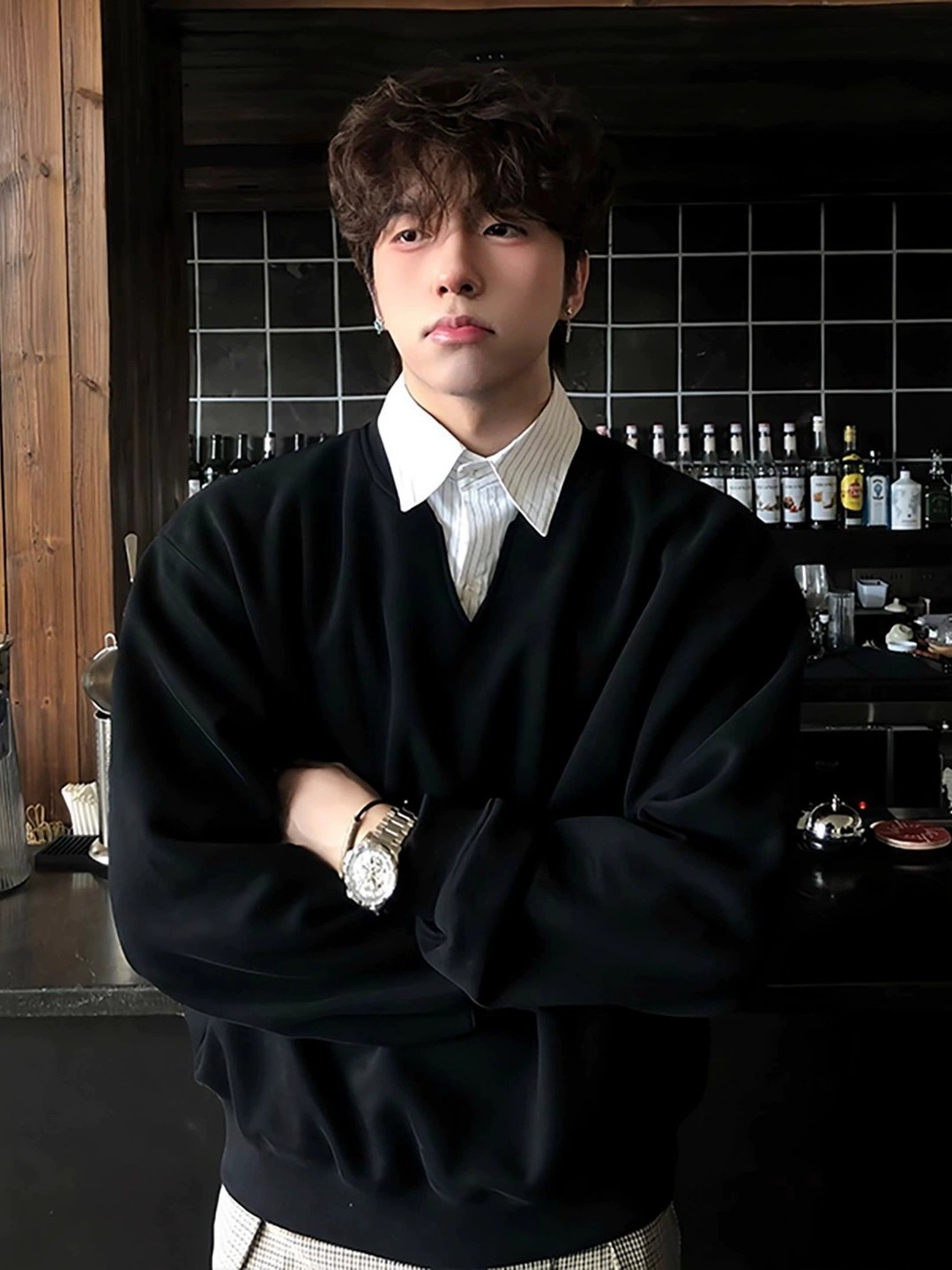 This premium men’s sweatshirt combines the look of a layered shirt with the comfort of a pullover. Crafted from high-quality wrinkle-resistant polyester, it features a classic polo collar and a practical zipper front. With a relaxed, loose fit and neat side pockets, it offers both style and utility. Available in black, navy, and light gray, this versatile piece fits seamlessly into your casual wardrobe. Designed for teens and young adults, it embodies a retro collegiate vibe, perfect for spring and autumn outings.
