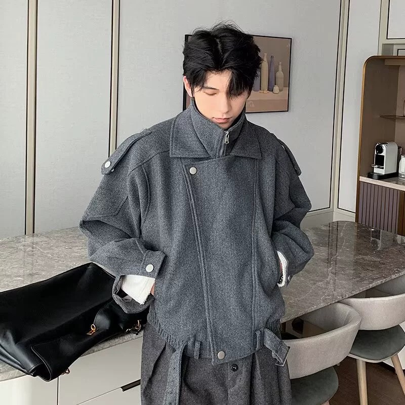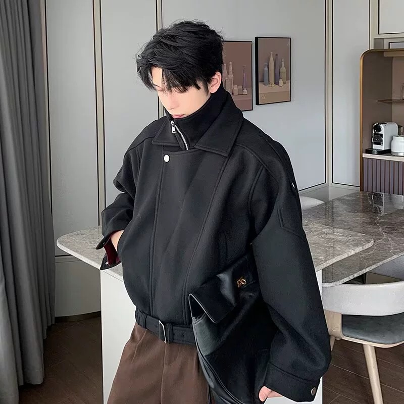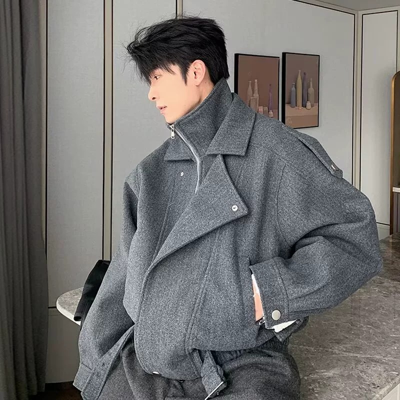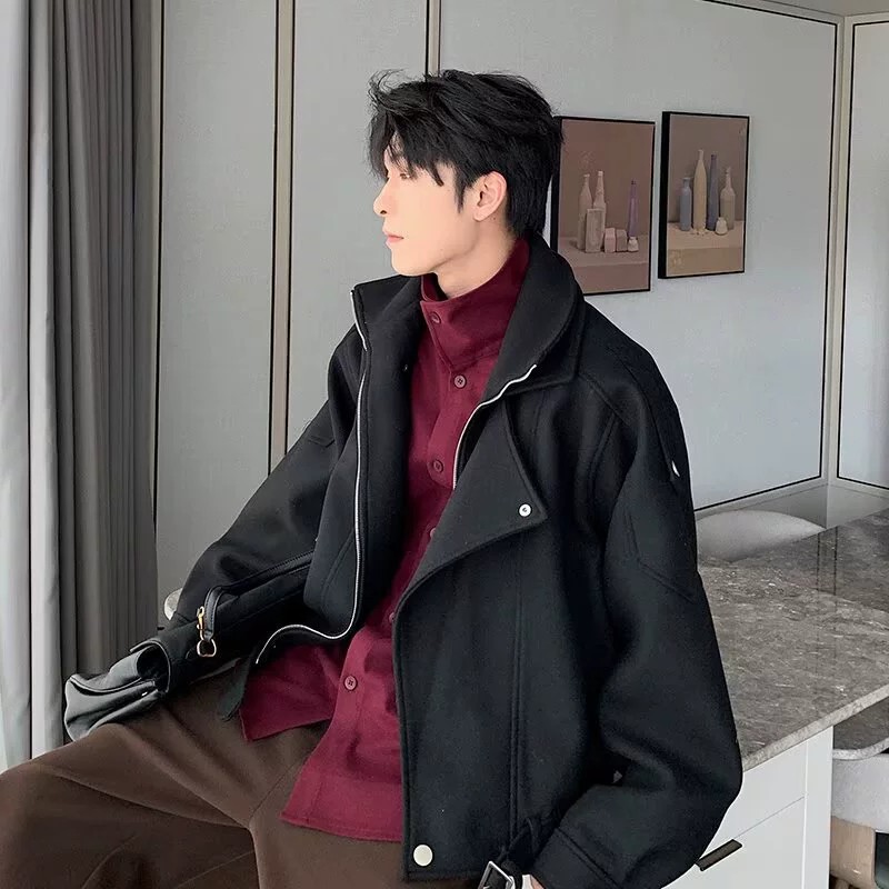 This premium men’s jacket combines Korean retro style with modern streetwear vibes. Crafted from durable polyester with a wool-like finish, it features a unique double-layer stand collar and color block patchwork detailing. The loose fit and regular length make it comfortable for daily autumn wear, while long sleeves and classic lapel collar complete the look. Available in upgraded gray and black shades, this jacket suits fashion-forward young men aged 24-35 seeking a sophisticated yet casual outerwear option. Perfect for layering in cooler weather and elevating everyday outfits with a sleek urban edge.