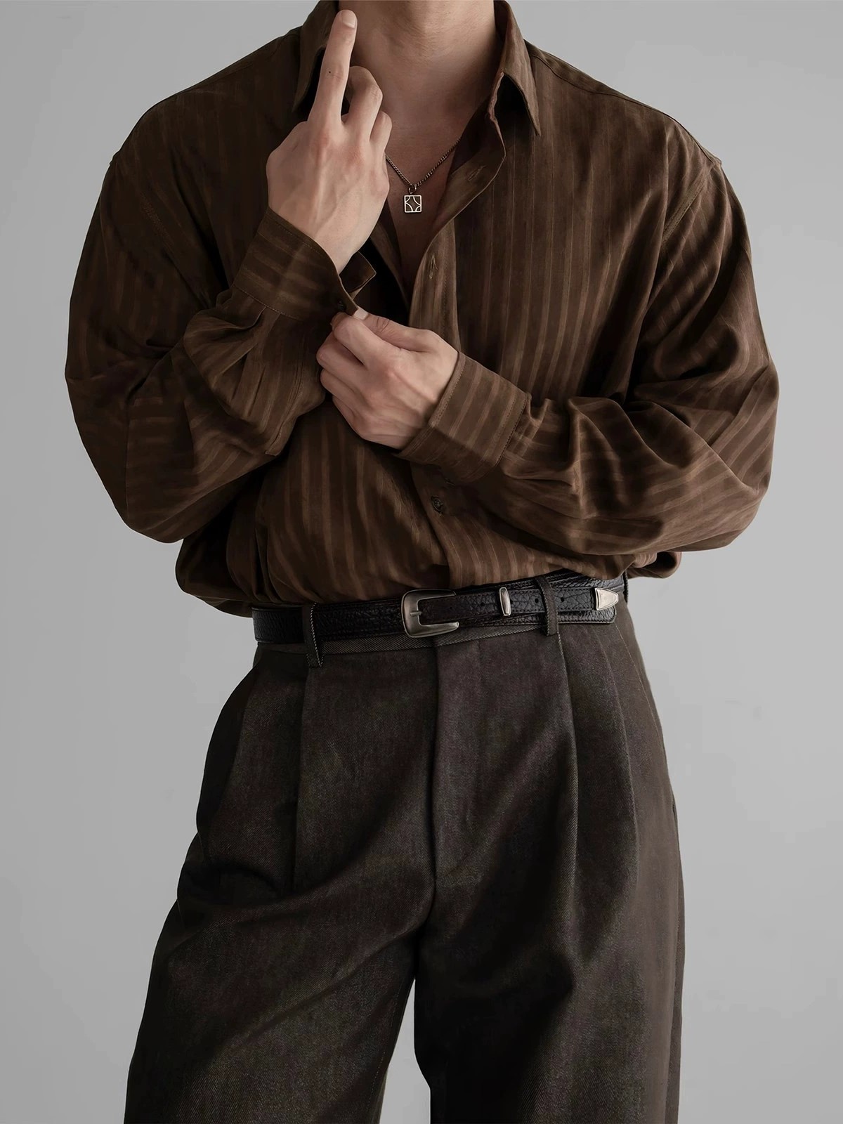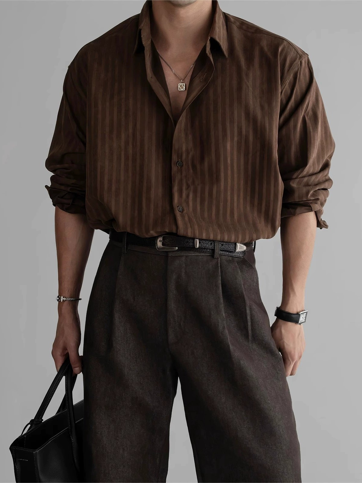 Elevate your autumn wardrobe with this premium men’s textured long sleeve casual shirt. Crafted from over 96% polyester with a wrinkle-resistant finish, this shirt offers both comfort and easy care. Its vintage-inspired vertical stripes and classic spread collar bring a refined yet relaxed vibe, perfect for a light mature look. Designed with a loose fit and expertly stitched detailing, this breathable shirt is ideal for casual occasions. Available in brown and black, and sizes M to XXL, it suits youth and adults looking for stylish, laid-back elegance.