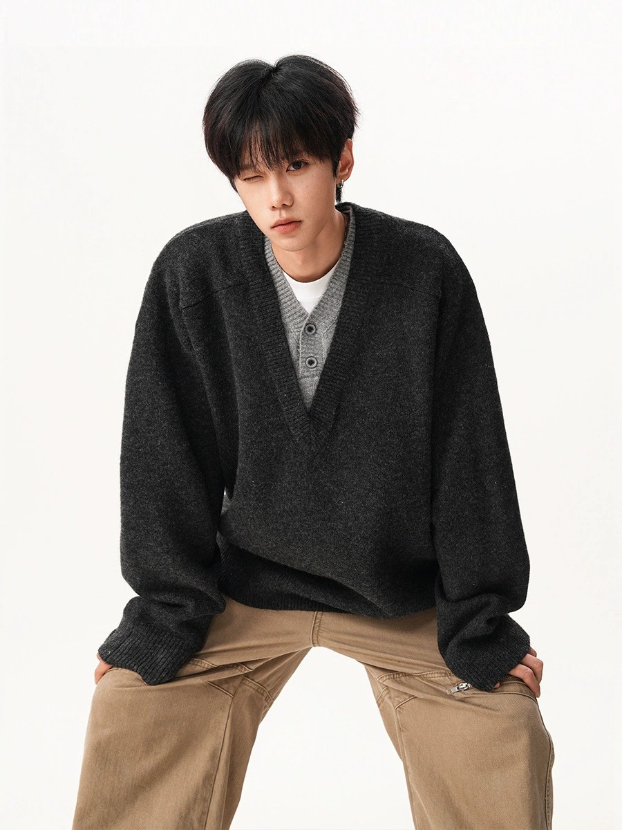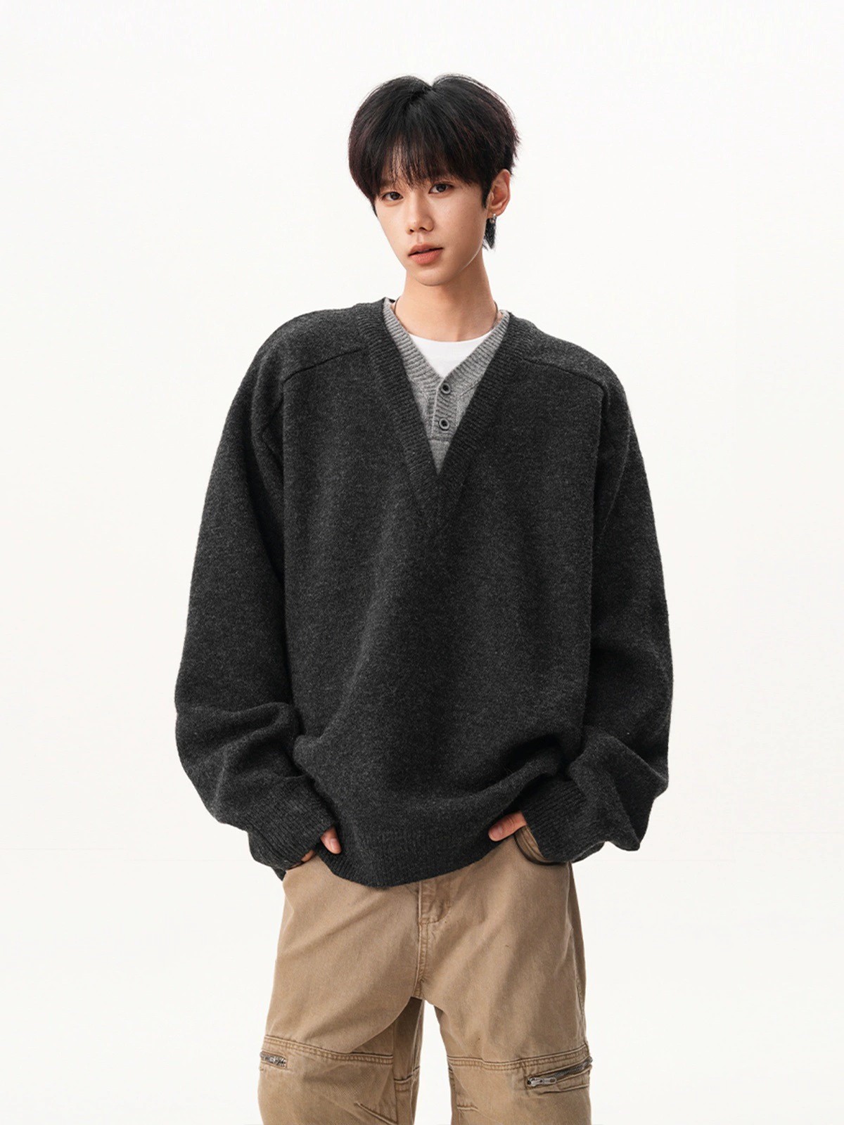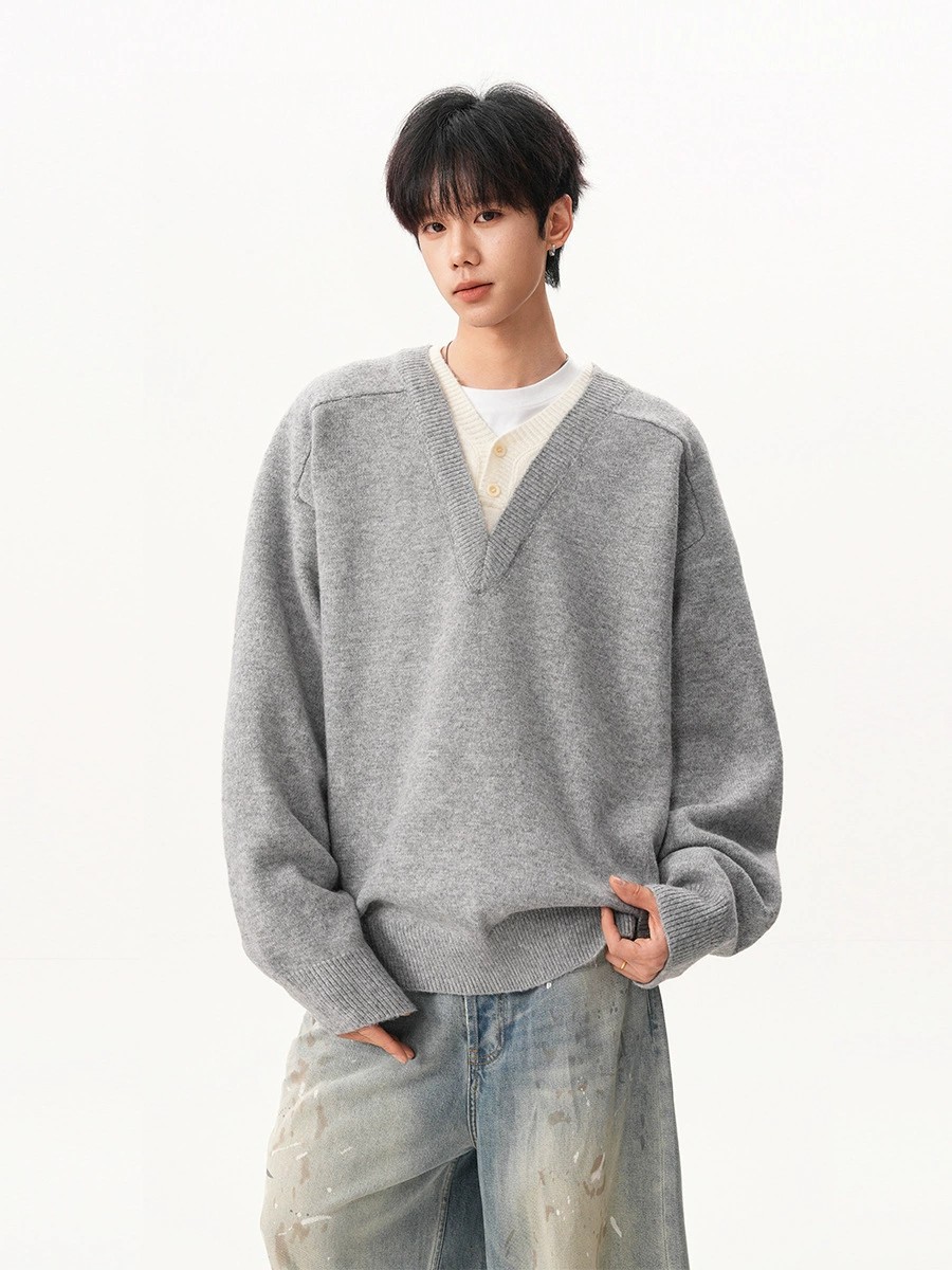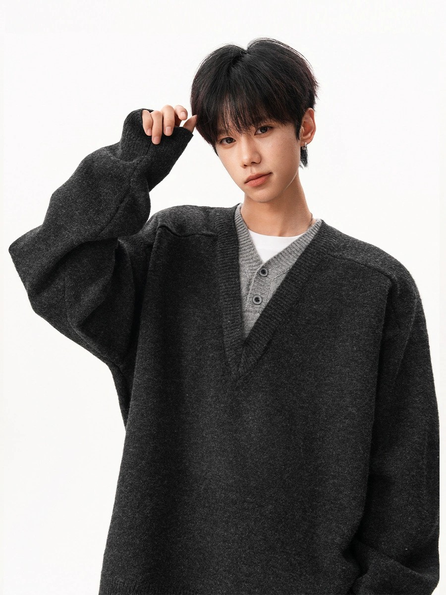 This men’s V-neck knit sweater combines a vintage layered polo style with breathable polyester fabric for all-day comfort. Designed with a relaxed fit and long sleeves, it features a trendy patchwork detail and is available in versatile light and dark gray shades. Ideal for everyday winter wear, the sweater blends casual and retro aesthetics, inspired by Hong Kong street fashion. Crafted from durable, mixed synthetic fibers, it promises breathability and comfort for young fashion enthusiasts. Available in sizes M to XXL, it’s your go-to choice for warmth and style this season.