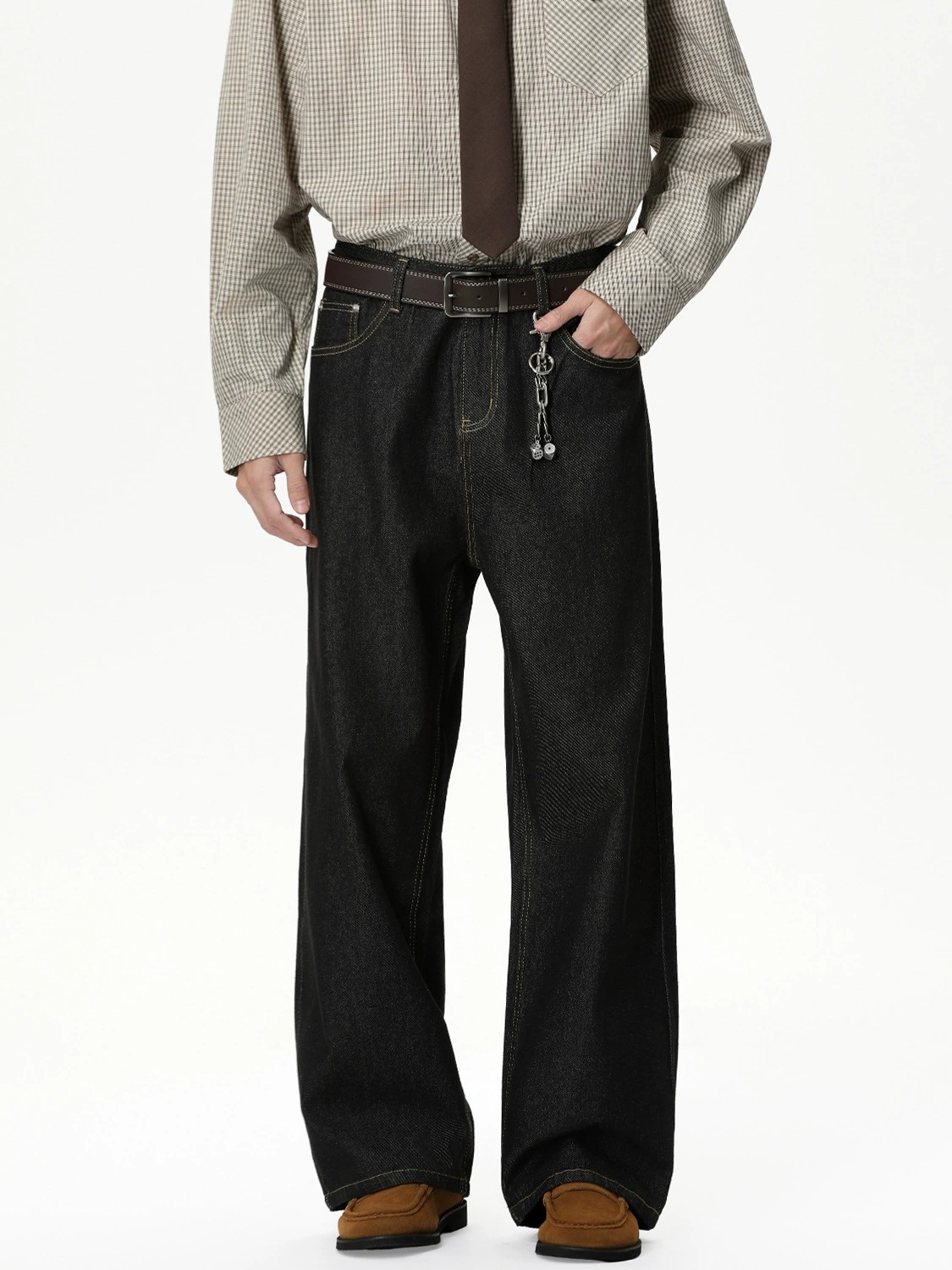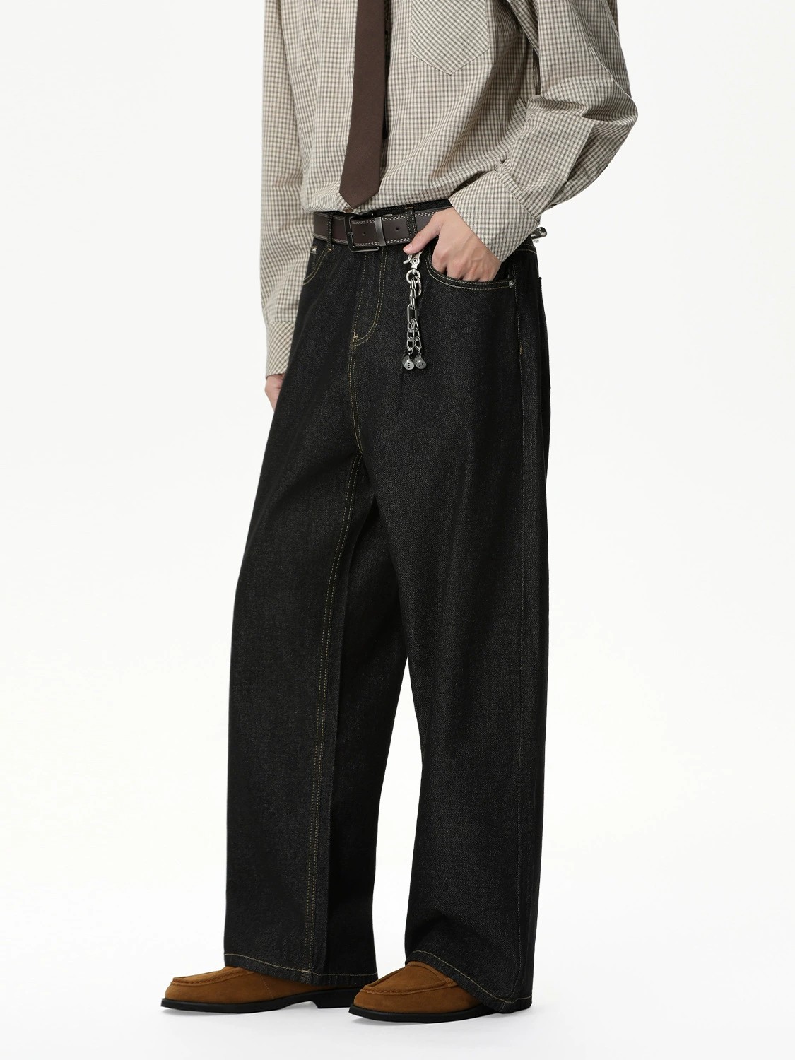MTLCLOTHES men’s relaxed wide-leg jeans feature a mid-rise fit crafted from premium cotton blend denim, ensuring a natural drape and breathable comfort. These versatile straight-leg trousers come in classic denim black and blue, tailored in a loose, youthful Korean style. Designed without stretch but with a smooth zipper fly, they offer a clean, contemporary silhouette ideal for daily wear. Available in sizes S to XL, these jeans are a trendy addition to any modern wardrobe for four-season use.