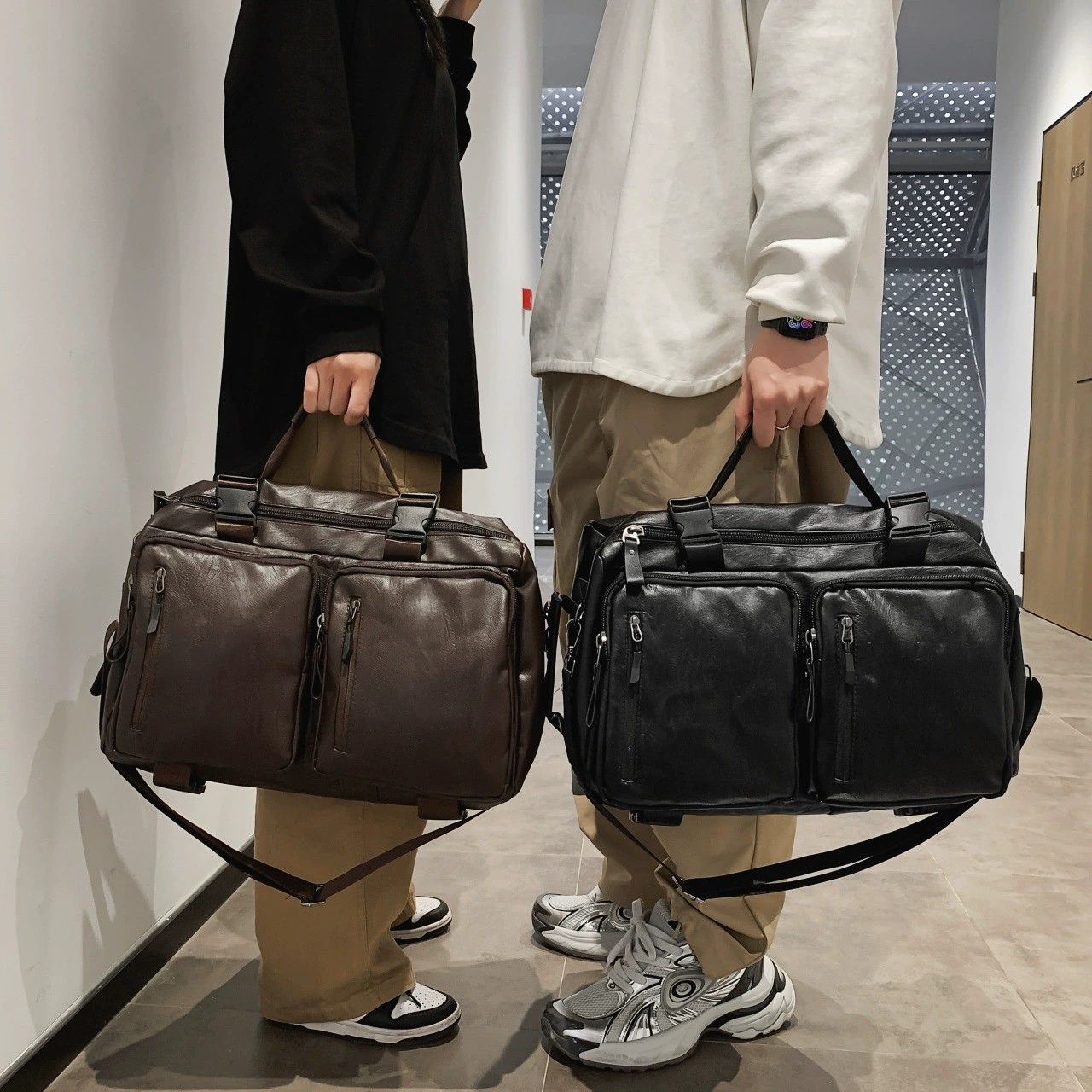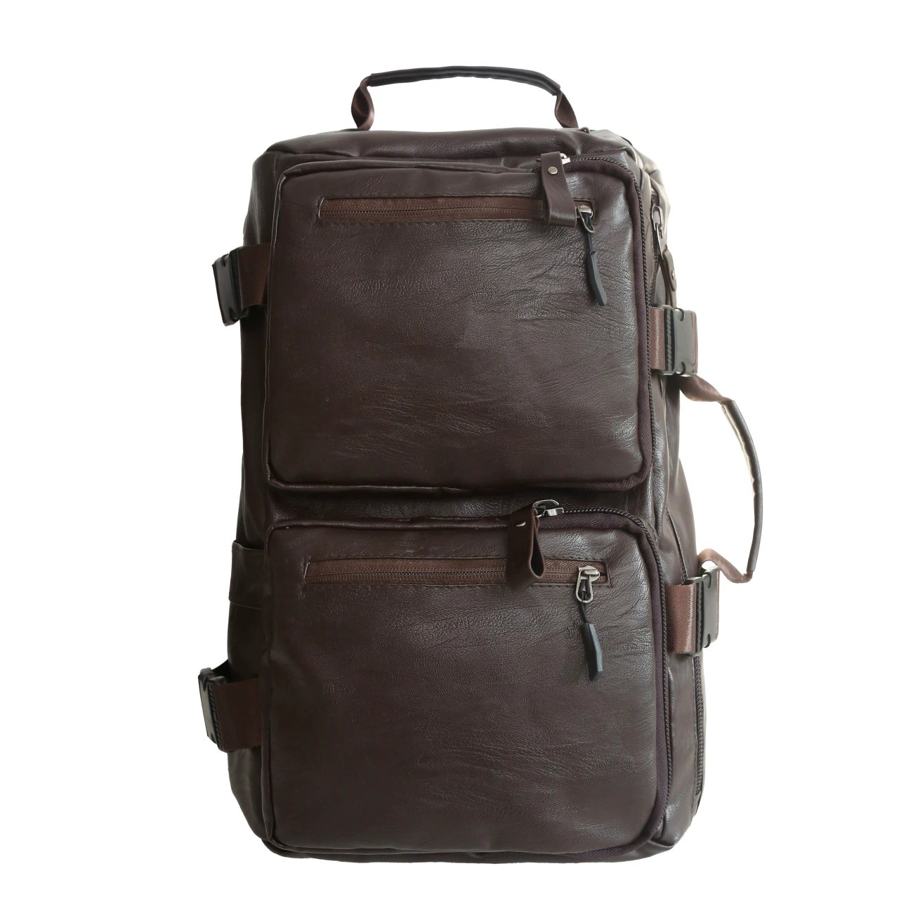 This vintage-inspired multifunctional backpack combines style and practicality in one sleek design. Crafted from durable PU leather with a soft inner lining, it offers a spacious 36-55L capacity ideal for travel, casual outings, or business use. Featuring a lightweight and ergonomic structure, it reduces burden while providing ample storage space. The bag supports multiple carrying options, including shoulder, crossbody, and backpack styles, making it versatile for any occasion. Available in black and brown, its subtle letter pattern adds a modern touch to the minimalist, unisex design. Perfect for those seeking a stylish and functional everyday companion.
