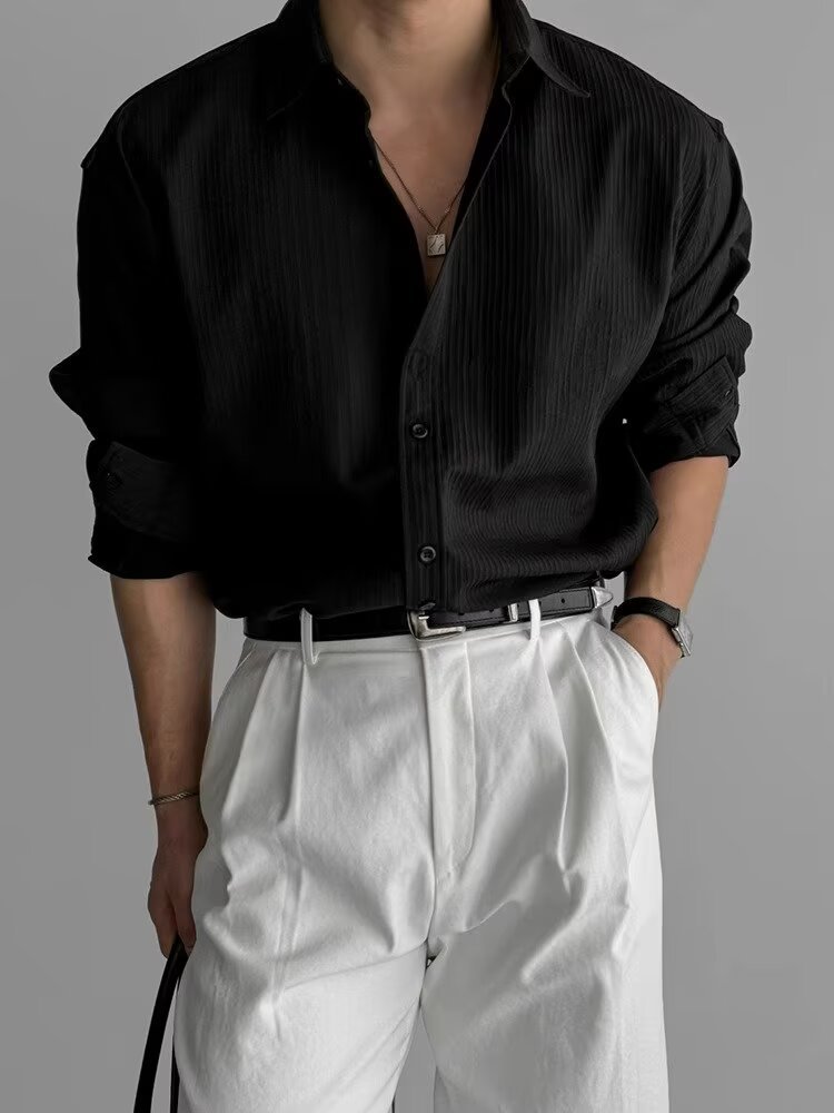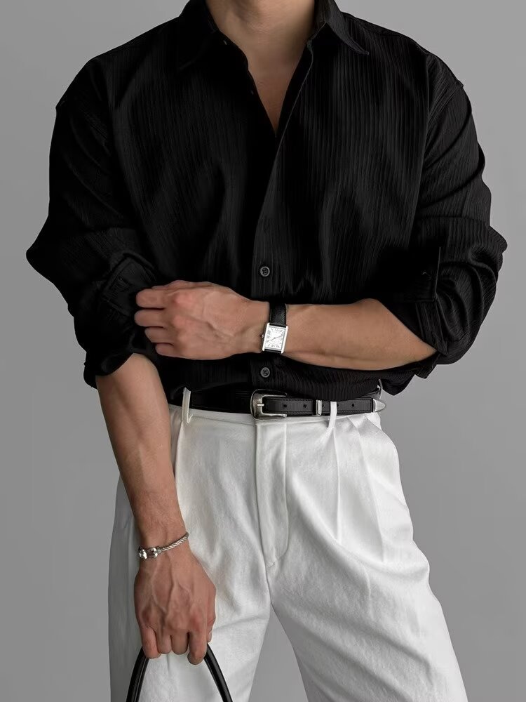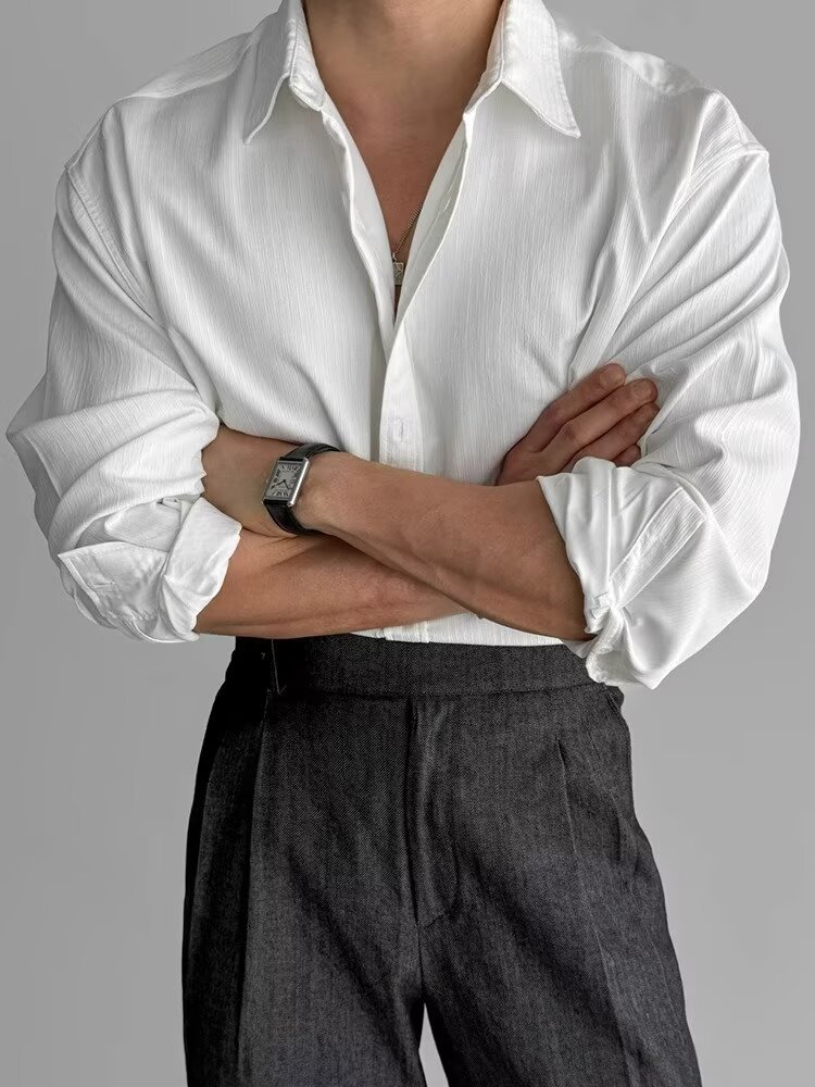 A modern unisex shirt with a clean silhouette and soft textured handfeel. Designed for spring/summer daily wear and smart-casual looks.